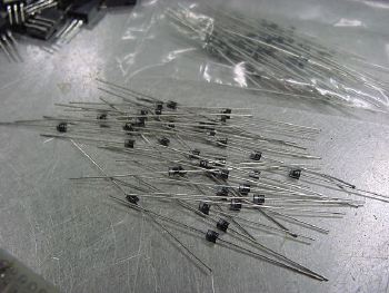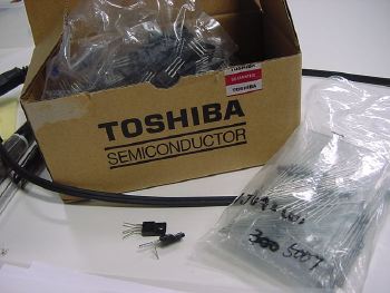 12個並ぶと、モーター3回路分。このトランジスタは特価で1個90円。500個買った。