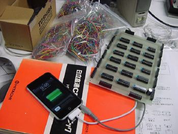 昨日の作業はかなりの疲労を招いたようで、きっちり12時間の睡眠。 翌日の講義2コマの準備もあり、この日は午後に学内で会議があるので、 実質的な作業時間はほとんど取れない、と判明したが、とりあえずの配線スタートを切ることにした。いつものように回路図らしい回路図は無いので、ここからは考えながらの作業となり、iPodは撤去して、集中モードである。