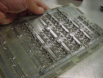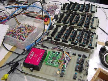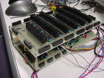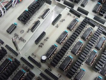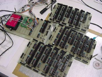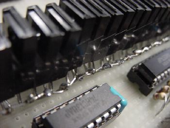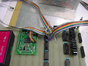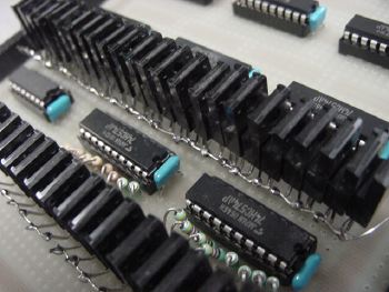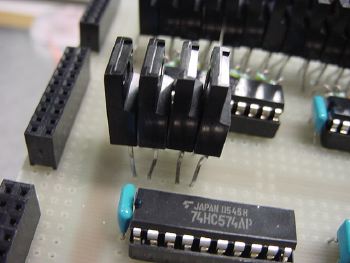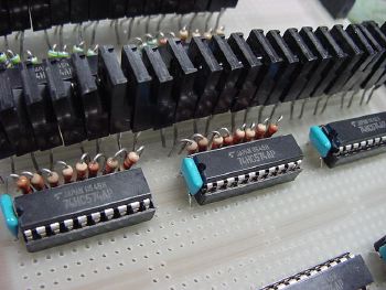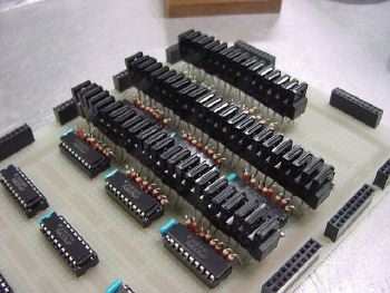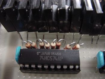 この245の出力は、同じ基板上の2個の574の入力とともに、 基板間ケーブルを経て、残りの3枚にも行くことになる。