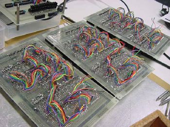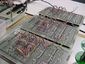 これで、あと64回路、つまりこの満タン基板をあと2枚、作らないといけない。 インスタレーションはまさに「数との戦い」である。