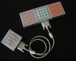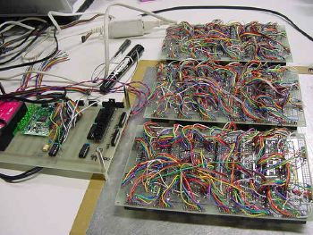 これは、またまた例によって長いハンダ付けの道のりである。 かつて、黒幕としてインターフェースを作ってあげることで完成した、 学生のインスタレーション作品がいくつも思い浮かんだ。 メディアアートにおいて、「数」はある種の主張であり、多数の同じモノが並ぶことは重要である。 そのためには、AKI-H8に多数のポートを増設することがどうしても必要になる。