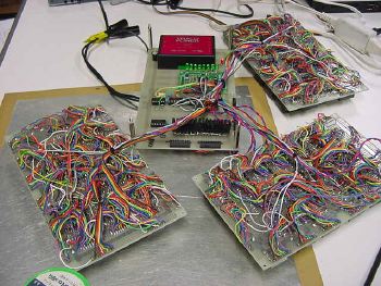 朝から夕方まで、息をつめるような集中の中、 A/D入力、ディジタル入力のMIDI出力をまず完成させ、 モータ制御のソフト開発とともにハードの若干のバグを修正して、遂に、 鈴木絢マシンが 完成した(^_^)。まだまだここから、100個のモータに約500本の配線があるが、 いよいよ、凄いインスタの実現が「見えて」きた。