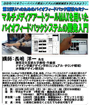 - 「加速度センサ」と「画像認識センサ」を使って約2分間のMaxデモ演奏 (これもバイオフィードバック)