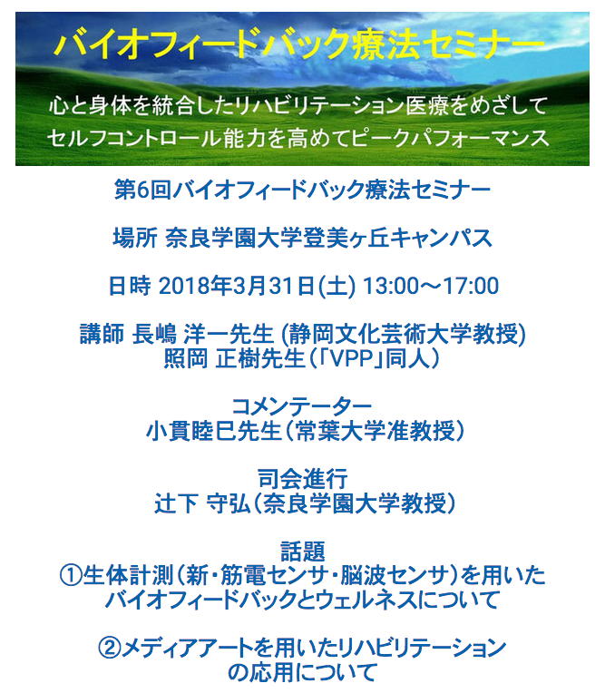 - (甲南女子大学→)奈良学園大学の辻下先生と出会い、バイオフィードバックに注目