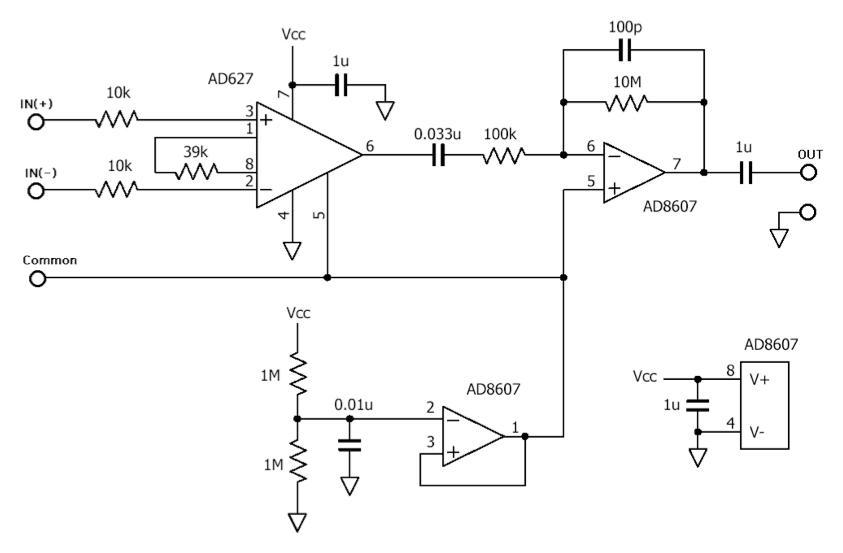 以下は、執筆のために後述の「参考文献」などを調べて書いた私的メモですので、読み流すだけとして下さい ●生体情報の種類(といくつかの事例紹介) ※ ▲印については扱わない バイタルサイン 血圧 - 絶対値の計測 → ▲ 脈拍数 - 絶対値の計測 ○事例紹介 呼吸速度 - 絶対値の計測 ○事例紹介 体温 - 絶対値の計測 → ▲ 排尿・排便 → ▲ 瞳孔反射 → ▲ 脳波 - 特定のパターン → ▲ 反射(無意識の反応) → ▲ 随意運動 - 意志/意図に基づく 運動 - 筋肉のコントロール ◎ → 筋電によるジェスチャ認識/コミュニケーション 発声・発音 → ○事例紹介 脳波 → ○事例紹介 ●生体情報の計測・監視(といくつかの事例紹介) ※ ▲印については扱わない ※医学的に高度/特殊なものを除く 非接触計測 → ▲ 画像認識 - 姿勢、表情、運動、・・・ 体温 - サーモグラフィー レントゲン、CTスキャナ、超音波エコー、fMRI、・・・ 接触計測 化学的計測 - 内分泌系(血糖値、イオン、ホルモン、・・・) → ▲ 物理的計測 呼吸 - 口頭/鼻先の風量変化、肺の伸縮、末端C02濃度 ○無意識下の低下は「酔い」に関係 ? 心拍 - 指先/耳たぶ(ヘモグロビン濃度変化) ○赤外LED→フォトTRのクリップでピーク検出 血圧 - 加圧と心音から計測 → ▲ 体温 - 温度センサ → ▲ 皮膚電気抵抗(GSR: GalvanicSkinResponse) - 皮膚の電気伝導度 - 汗腺(交感神経系) ○事例紹介 姿勢 - 身体に取り付けた加速度センサの重力方向に対する成分から推定○事例紹介 筋音 - 高感度マイクから筋肉の状態を計測 ○事例紹介 電気的計測 - 神経系(高速の化学反応) - インパルスの伝播 神経束パルス → ▲ 脳波 (EEG: ElectroEncephaloGram) → ▲ 心電 (ECG: ElectroCardioGram) → ▲ 筋電 (EMG: ElectroMyoGram) 針筋電 → ▲ 表面筋電 ◎ ※以降の「筋電」は表面筋電に限定 誘発筋電(電気刺激に対する反射筋電分析) → ▲ ●生体信号処理に特有な注意点 ※筋電を念頭に・・・ 電気信号の伝わり方 神経や筋肉(内部)の活動電位 - 約100mV 身体を伝導する際に1/1000〜1/10000に減衰 電気信号として非常に微弱 ※以下の数値は文献によりばらつきあり 神経束パルス : 10μV (細胞外) EEG(脳波) : 1μV〜500μV ECG(心電) : 50μV〜2mV EMG(筋電) : 10μV〜10mV 信号源インピーダンスが相当に大きい EEG(脳波) : 1kΩ〜100kΩ ECG(心電) : 1kΩ〜100kΩ EMG(筋電) : 100kΩ〜10MΩ ハム(交流誘導ノイズ)等が乗る 100〜1000倍のオーダのノイズ コモンモード - 差動増幅回路によりキャンセル - 基準電極も必要 ハムノイズ - 50Hz/60Hz選択的ノッチフィルタ アーティファクト(基線変動) - 電極の接触状態/人体の運動による 100〜1000倍のオーダの偶発的ノイズ 電極が皮膚に馴染むまで数分かかる ※ 計測したい信号以外の「雑音」を全てまとめてこう呼ぶこともある ドリフト 計測環境の温度変化 長時間計測による電圧変化などの電気的変動 周波数帯域はDC〜5kHz程度まででOK ※以下の数値は文献によりばらつきあり 神経束パルス : DC〜3kHz EEG(脳波) : 0.5Hz〜70Hz ECG(心電) : 0.1Hz〜200Hz EMG(筋電) : 1Hz〜2kHz 神経活動電位のイオンチャンネルに起因する特性 閾値(細胞膜の脱分極→非線形動作) 不応期 refractory period (Na+チャンネルが不活性となり反応しない時間) 骨格筋の絶対不応期 : 1〜3msec 心筋の絶対不応期 : 200msec 生体環境に有害な電気刺激等を与えない(危険防止) 個人差、疲労、適応/学習について考慮する 被験者実験には被験者の同意書・倫理委員会の承認が必要参考文献