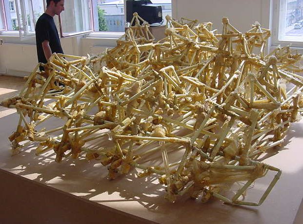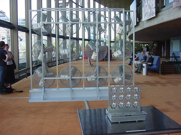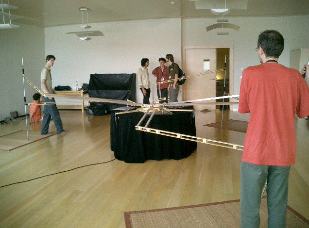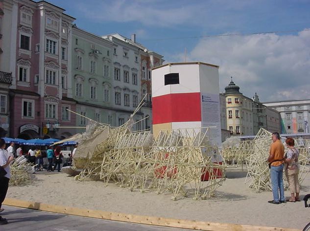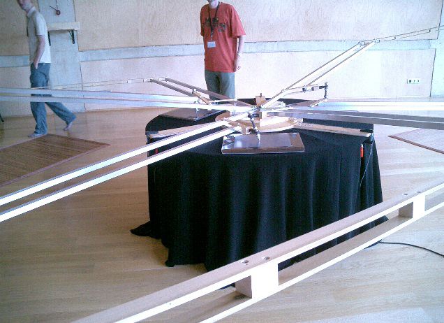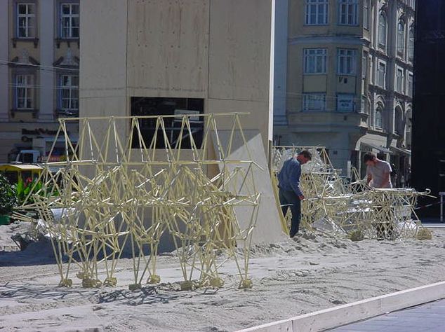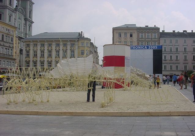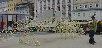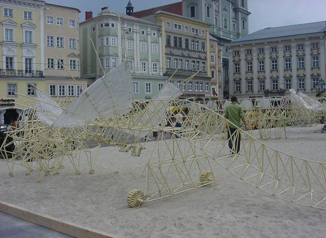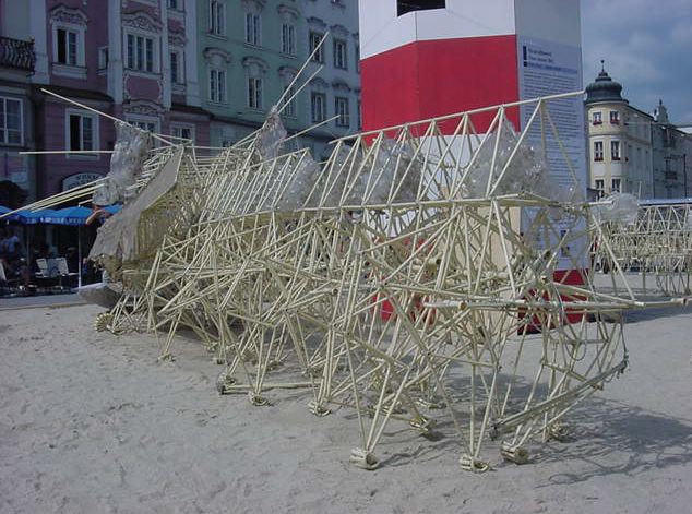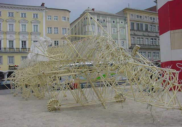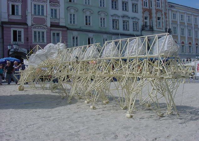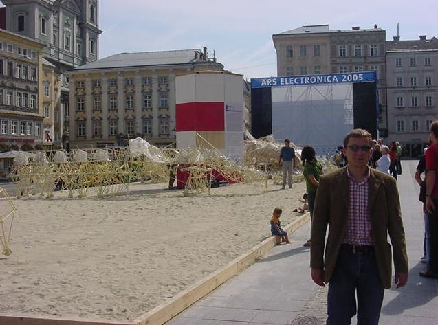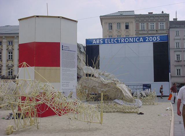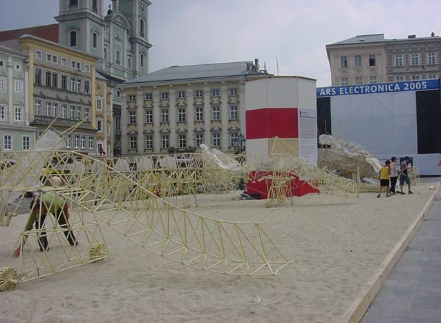 アルスセンターからドナウ川を渡ってハウプト広場に戻り、 CAMPASを見て、さらに広場での展示を見ました。 電気をまったく使わない、この歩行ロボットは、ビデオを見ないと判ってもらえないです。 動力は、引っ張る人間、あるいは多数のペットボトルに溜めたエアーだけです。 「未踏」関係の取材のあと、この日も夕方から深夜までプログラミングに没頭しました。 ★ ★ ★ ★ ★ ★ ★ ★ ★ ★ ★ ★ ★ ★ ★ ★ ★ ★ ★ ★ ★ ★ ★ ★ ★ ★ ★ ★ ★ ★