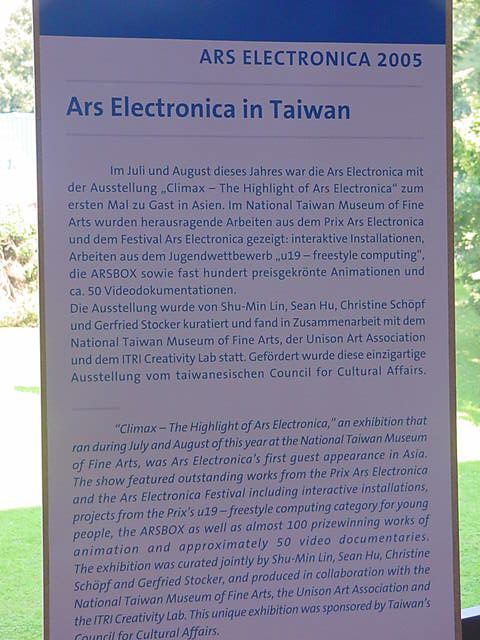 晩にドナウパークでの花火パフォーマンスが予定されている9月3日は、 朝から雨模様で天気が悪い日となりました。 この日も昼過ぎまでホテルの部屋に引き蘢って「未踏」のプログラミング三昧。 午後になってArchitekturforum Oberosterreichの展示に行くと、平井さん夫妻に出会いました。 その後ブルックナーハウスの展示を覗いて、「未踏」関係の取材のあと、 雨に追われてホテルに戻りました。夕方から深夜までホテルの部屋でプログラミングでしたが、 21時頃には花火がドカンドカンと聞こえたので、無事にライブは行われたようです。 ★ ★ ★ ★ ★ ★ ★ ★ ★ ★ ★ ★ ★ ★ ★ ★ ★ ★ ★ ★ ★ ★ ★ ★ ★ ★ ★ ★ ★ ★ ★ ★ ★ ★ ★ ★ ★ ★ ★ ★ ★ ★ ★ ★