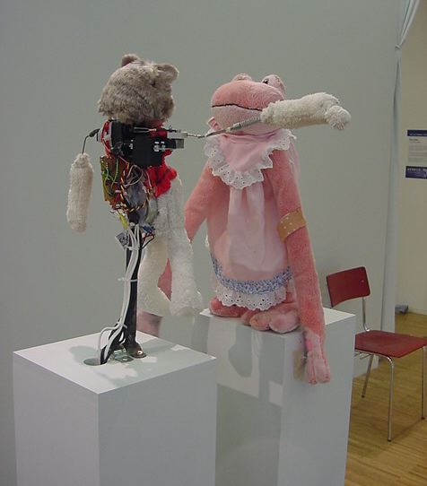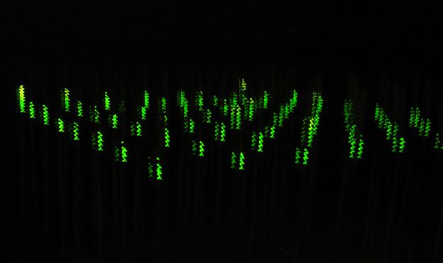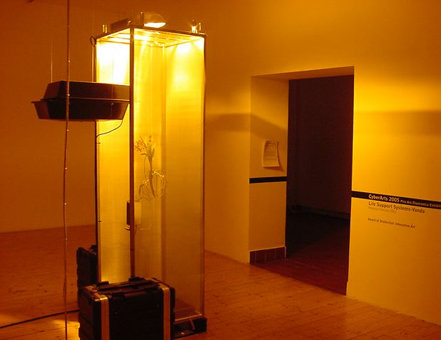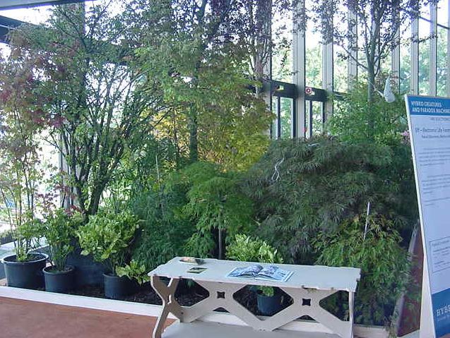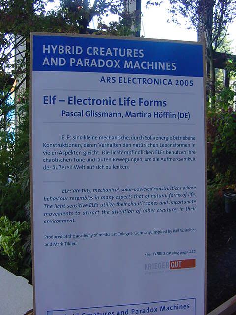 今年のテーマである「Hybrid」としてロビーに展示された「Elf」というインスタレーションです。 実際の植物で「森」を作って、そこに太陽電池を電源とするローテクの電子昆虫が多数、 いるという空間です。鳴いたりモーターで動いたり。 電源を供給するために、ギラギラと過剰にライトで照明していました(^_^;)。 ★ ★ ★ ★ ★ ★ ★ ★ ★ ★ ★ ★ ★