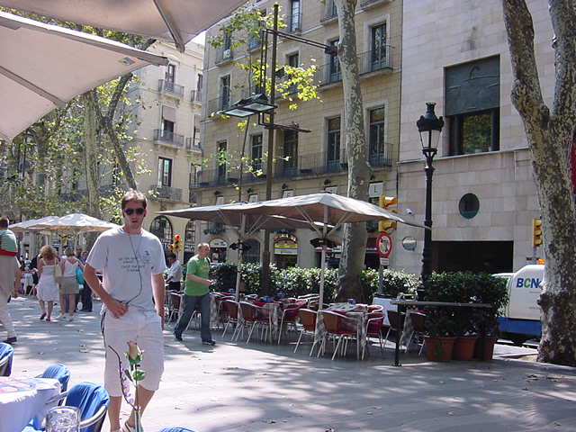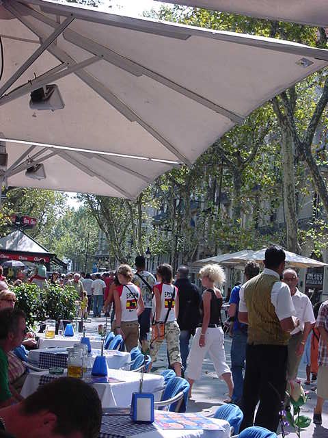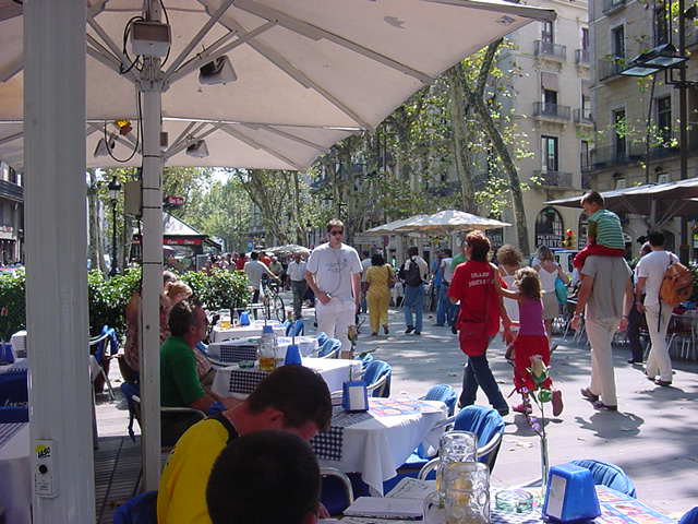 9月10日になりました。 この日は午前に未踏プログラミング、 午後になって未踏の関係の取材、そして晩はまたプログラミングでした。 ただし、それらの合間の食事とか取材の移動とかでちらっと街に出ると、 なんせ観光都市バルセロナなので、新鮮なリフレッシュになりました(^_^)。 以下は、ランブラス通りでのランチの風景です(^_^)。 ★ ★ ★ ★ ★ ★ ★