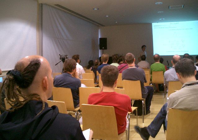 バルセロナ市内に帰り、ICMCの午後のセッションにぎりぎり滑り込みました。 ところが最終日ということで、前日まで設けられていたカフェコーナーが消えていて(^_^;)、 ここでサンドイッチか何か昼食に仕入れて・・・という計画が破綻しました。 空腹に耐えかねて、午後のセッションの後半(17-19時)からパスして退出、 これにて今年のICMCはオシマイとなりました。