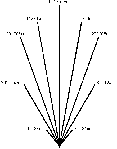 This is the measured beam pattern for the SRF02, showing the maximum detection range of a 55mm diameter plastic pipe. |
