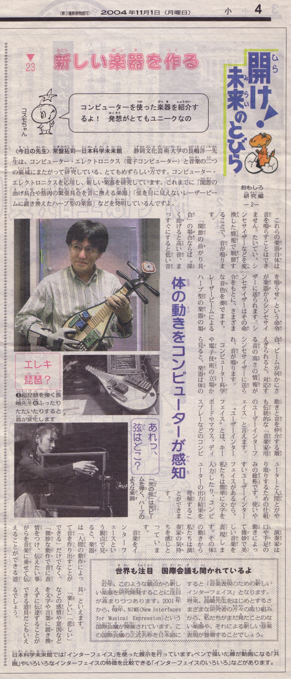 - 落先生の話題にあった「Max」・「ミン楽器」・「センサ」などについては、今日の講義の中で紹介しますので、途中にある「参照ページ」のリンク先に行かずにお話に集中して下さい。よそ見をしていると損をします
