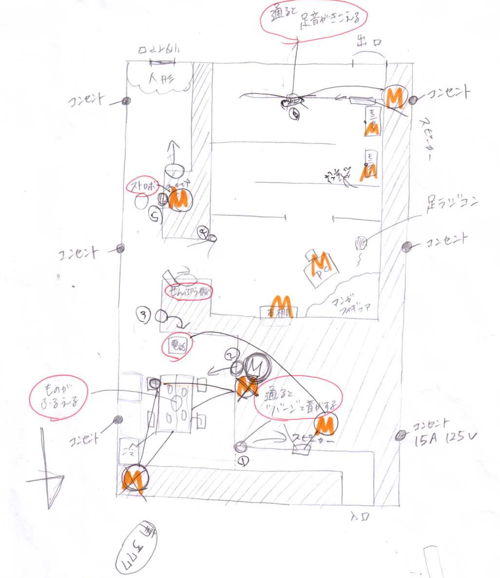 - センサーを使用するとなるとプログラミング的な知識が必要になるので、その道に通ずる人の助けが必要になると思いました。何かの企画でコラボ的な物を行い、その時に発表するという形をとっても面白くなるのではないか → デザイン/アートの世界では、色々な要素が絡んでくることで可能性を拡大できるので、「コラボレーション」というのはとても重要です。学生プロジェクトでも、工学系大学の学生と美大/芸大の学生とがコラボレーションする事例はとても多いです。僕はテクノロジーと音楽は得意ですが、「絵心」は全く無いという自信があるので、過去のマルチメディア作品においては、グラフィックの専門家とか、絵心のある学生とかとのコラボレーションを続けてきました。海外での作品公演でも、プログラムにはちゃんと"Graphics:誰々"というクレジットを入れています。