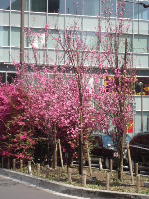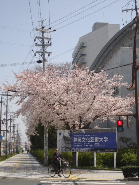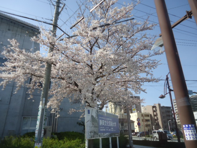 3月も最終日、いよいよ新学期・新年度の直前である。 ここは、昨日のCQ出版・オフ会で池袋泊して、朝帰り(^_^;)で東京から浜松に帰る新幹線の中で書いている。 昨日の様子をここにまとめて、この「Myo日記」もこれで終わりとしよう。 昨日の朝、大学から浜松駅に向かうバスに乗り、サークルKの交差点の赤信号でバスが停止していると、目の前には下のような、SUACの角の桜が満開であった。 幸先良いスタートである。