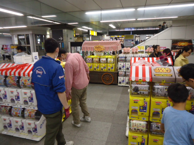 新幹線で東京へ、そして秋葉原へ。 やはり、秋葉原は普通ではなかった。 駅の構内に、コナンの教室があったり、ガチャポンが並んでいた(^_^;)。
