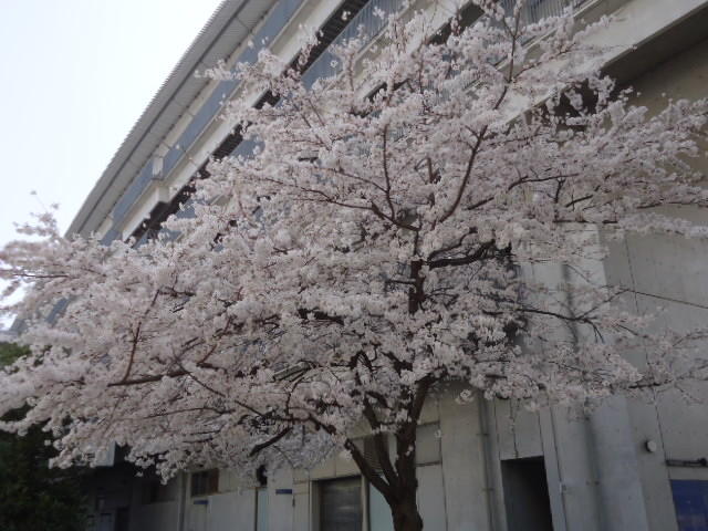 大学に戻ると、もう自由創造工房の前の桜は散り始めていた。