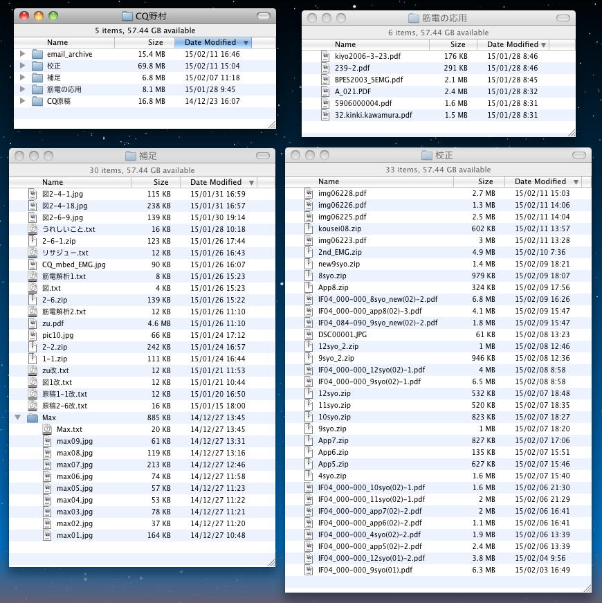 執筆依頼打診から3ヶ月、去年の12月23日に提出した原稿はその後、上のような変遷(補足・修正・校正)を経て最終的な記事となったが、実はこの日記を書いている時点で、どんな紙面であるか不明である(^_^;)。 最近は原稿執筆も電子化されていて、過去のような「著者最終校正」など、無いのである。 25年以上も昔、かつて「インターフェース」に連載や特集を書いていた頃には、宅急便で「紙」が行き来したり、急ぎの場合にはFAXであったが、今では編集者からの質問にメイルで回答しつつ補足記事を添付メイルで送ったり(上図の「補足」というディレクトリ)、下校がCQからPDFで送られてくるとプリントに赤を入れてスキャナで取り込んでZIPにまとめてサーバに上げてURLをメイルしたり(上図の「校正」というディレクトリ)、と全てが電子的にサクサクと進むのであった。