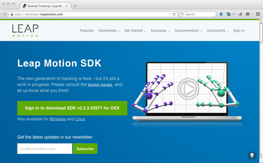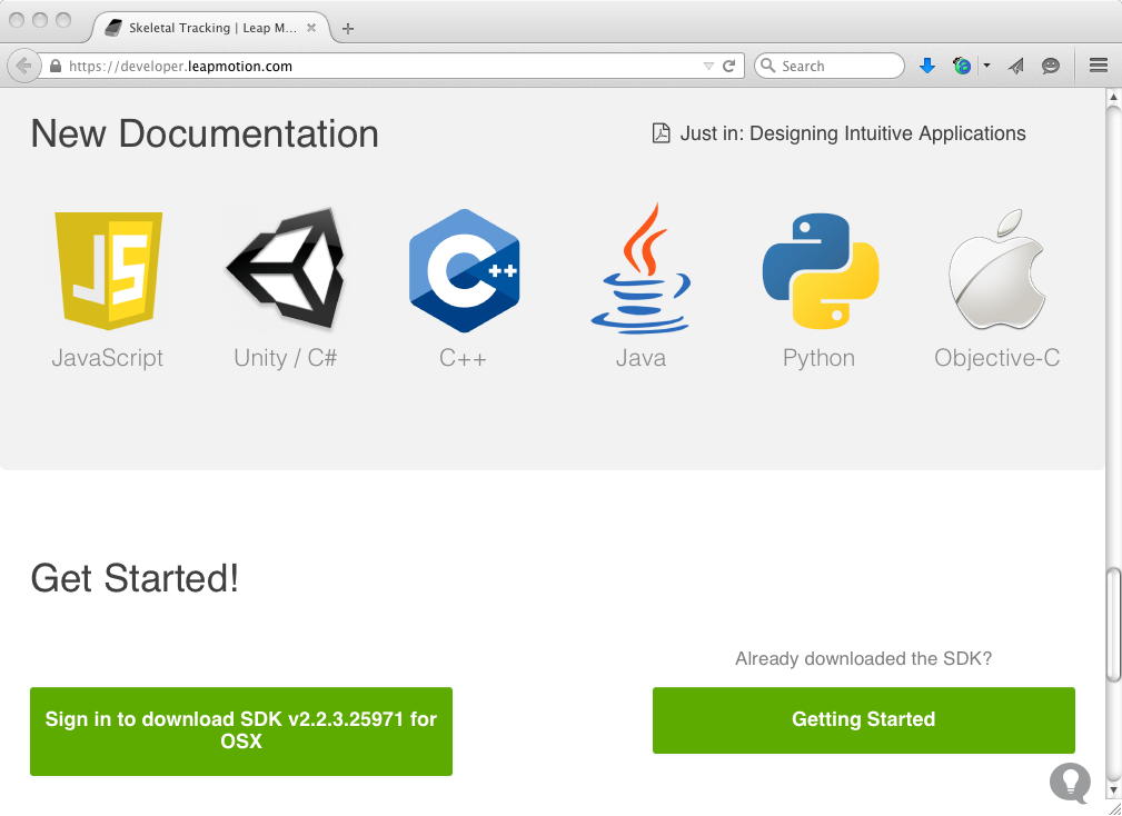 そこで初心に戻って、 leap motionのDeveloperページ に行ってみると、上のように、SDKで対応しているのは以下の6つの環境だった。