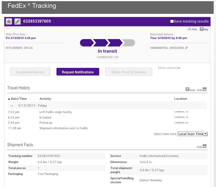 ・・・さすがである(^_^)。 まだ研究費(旅費枠以外)に余裕があったので、とりあえず駄目モトで、SUACの出入り業者(商社)に、このMyoを2台、発注するメイルを出したが、まぁ今期のうちに入ることは期待していなかった。 ところがなんと即答で業者からメイルがあり、他の企業から依頼されて予約していたMyoが1個だけなら手元にあり、もう1個については3ヶ月か半年かかるが・・・という事だった。 ただし事前購入のプレミアで、価格は199ドルのMyoが46000円だという(^_^;)。 そこで迷わず「では1個だけ、今あるものを購入します」と返信すると、翌日、2月4日にはMyoが 研究室に届いてしまった