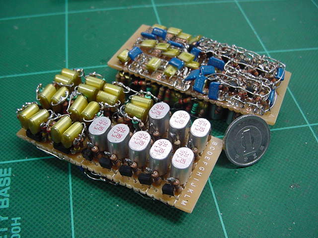 そしてこれが、苦心に苦心を重ねて完成した、フロントエンド回路8チャンネル分