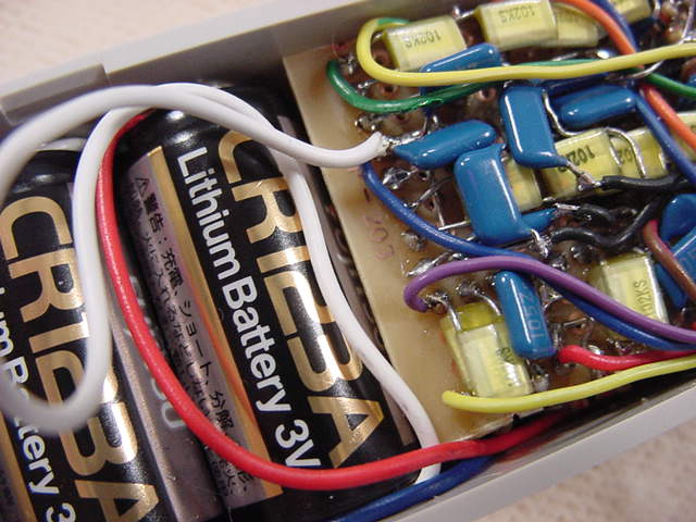 電源ラインの配線です。ケースの弾力で電池との接触はOK。