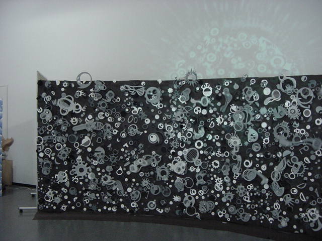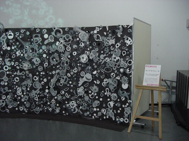 - 概要 鈴木絢の大学院修了制作「ネジマキニンゲン」を、その本来のコンセプト「壁のように立てる」を実現するためにプロジェクトチーム「30虎」により半年かけて制作した インスタレーション作品。8面の壁面パネル(ステンレス製枠組+3mmアルミパンチングメタル)には無数の鈴木絢(+30虎)制作の造形物が配置され、さらに 計96個のステッピングモータに取り付けられた造形物がコンピュータ制御により個別に回転/振動する。展示においては鈴木絢が学部卒業制作で制作した、 元々のコンセプト映像作品「アタマノナカノカイブツ」を投射することでイメージを拡大した。収蔵場所がないので展示直後に解体撤去され再現は不可能である