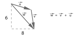 これを使うと、ここまではclass PVector{ float x; float y; PVector(float x_, float y_) { x = x_; y = y_; } } などとしていた定義が、以下のようになる。float x = 100; float y = 100; float xspeed = 1; float yspeed = 3.3; つまり、ここまではPVector location = new PVector(100,100); PVector velocity = new PVector(1,3.3); などとしていた処理を、ベクトルでまとめて以下のように記述する。★なお、これは暫定的な表示である。// Add the current speed to the location. x = x + xspeed; y = y + yspeed; ここまでの準備を経て、次のトピックは「ベクトルの加算」である。 ベクトルはたまたま並行である場合以外は方向がばらばらなので、その加算は独立な座標成分ごとに、という事である。 言い方を帰ると、あるベクトルの終点に加算するベクトルの起点を移動させると、この2つのベクトルを加算したベクトルの起点は最初のベクトルの起点、この2つのベクトルを加算したベクトルの終点は、以下のように連結された第二のベクトルの終点となる。// Add the current velocity vector to the location vector. location = location + velocity;