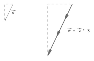 次に、ベクトルには、実数倍(スカラー倍)という演算がある。「mult()」である。 ベクトルのそれぞれの成分に、尾などスカラーを乗算する、というものである。 これは以下のように「実数×ベクトル」という演算である。