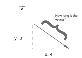 次に、ベクトルの大きさを与える「mag()」である。 これは以下のように、ピタゴラスの定理から、x方向、y方向それぞれの成分の2乗和の平方根である。 ベクトルvの大きさを | | v | | とも書く。