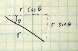 前回の日記が4月5日で、もう10日ほども空いてしまった。 SuperCollider日記 の方も相当に空いてしまっていたが、新学期も、先週のガイダンスに続き、今週の3回生個別面談が今日と明日とで終われば、ぼちぼちペースが作れるかな・・・というところである。 今日は、新しくなったマルチメディア室の使い方を、佐井先生の講義の冒頭にガイダンスする予定があるぐらいなので、少しでも進めるというよりも、思い出しに重点を置きたい。前回の続きとして、今日は チュートリアル の Trigonometry Primer I からである。 2次元平面上の任意の点の座標を、これまではxとyの直交座標系で扱ってきたが、もう一つのrとθの極座標系でも表すことができる・・・という話に進むのだろうか。 「三角法」の入門I、ということで、ここはサッサと進めていこう。
