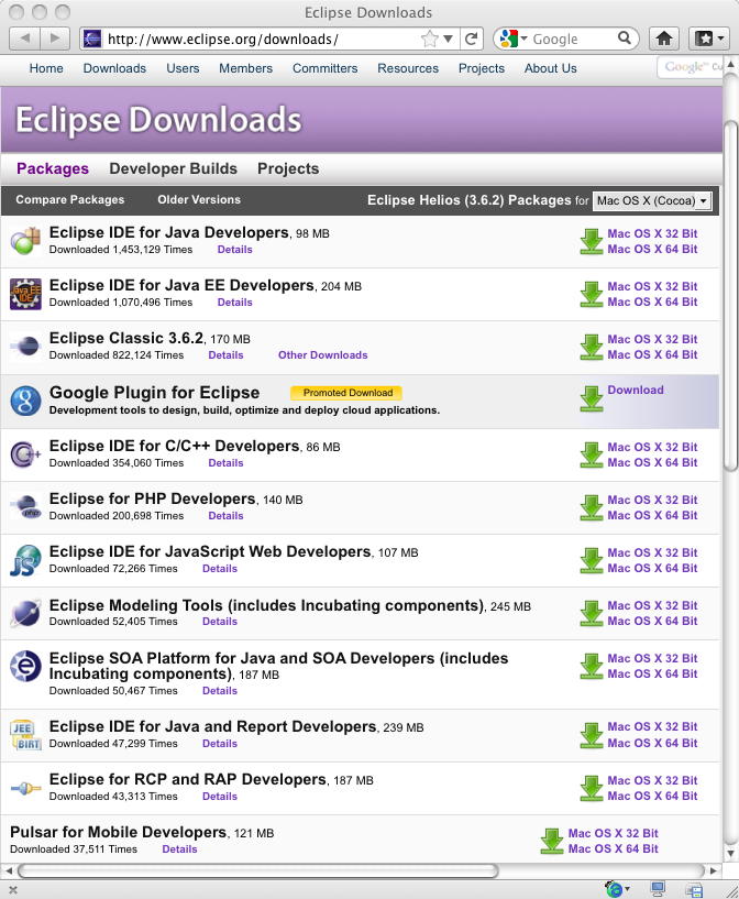 第1ステップは「Download and install Eclipse」である。 まずは ここ に行ってみると、以下のようにたくさんある。 ますますEclipseとは何なのか、謎である。