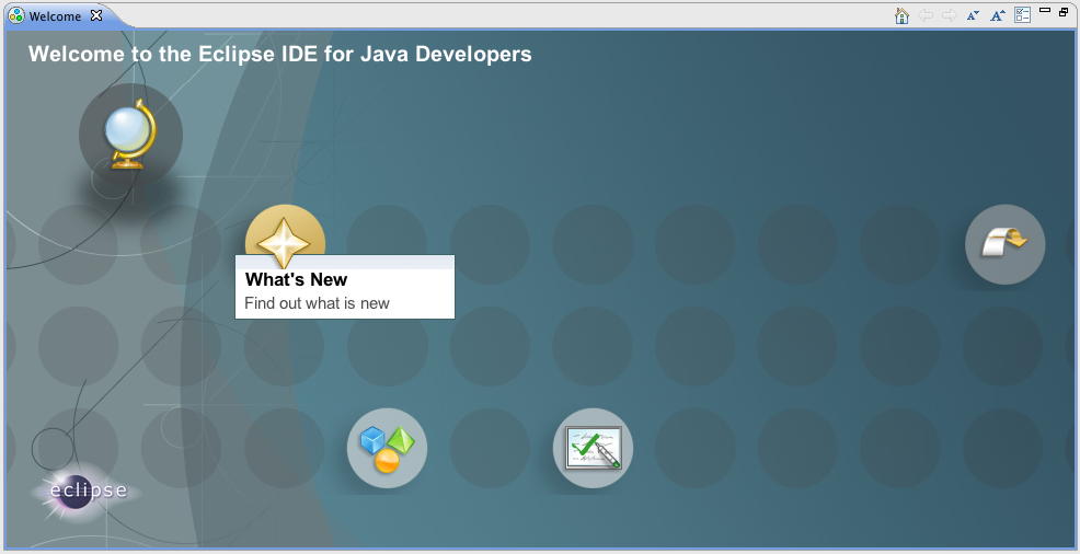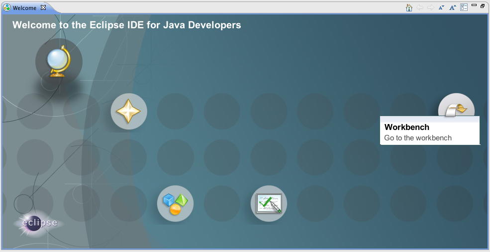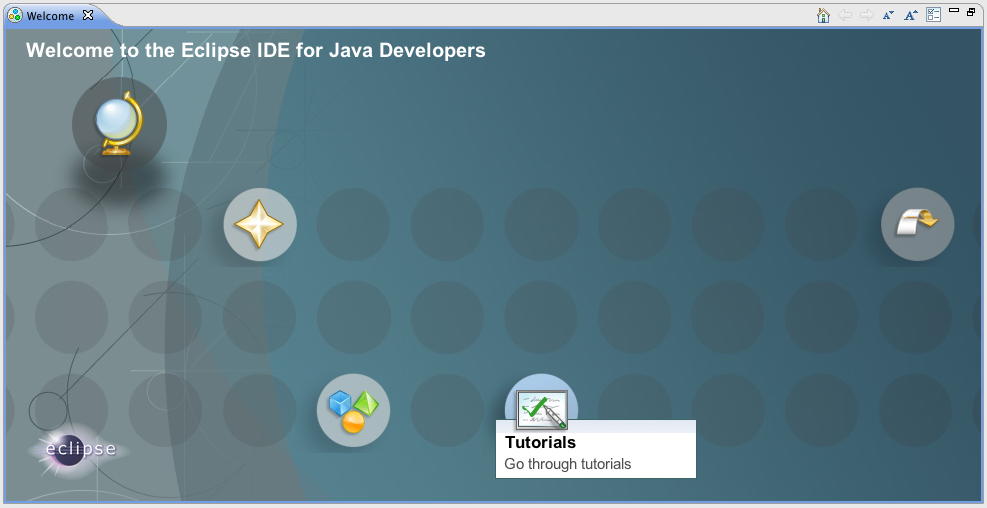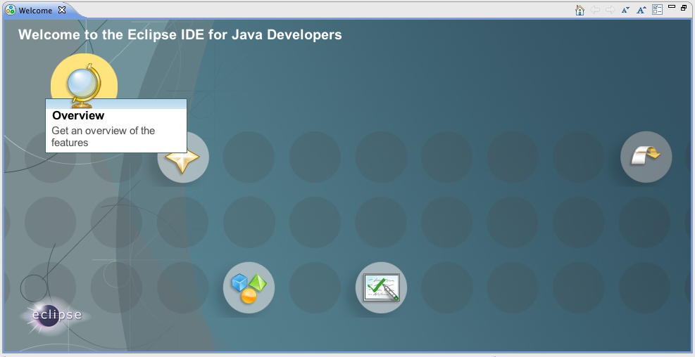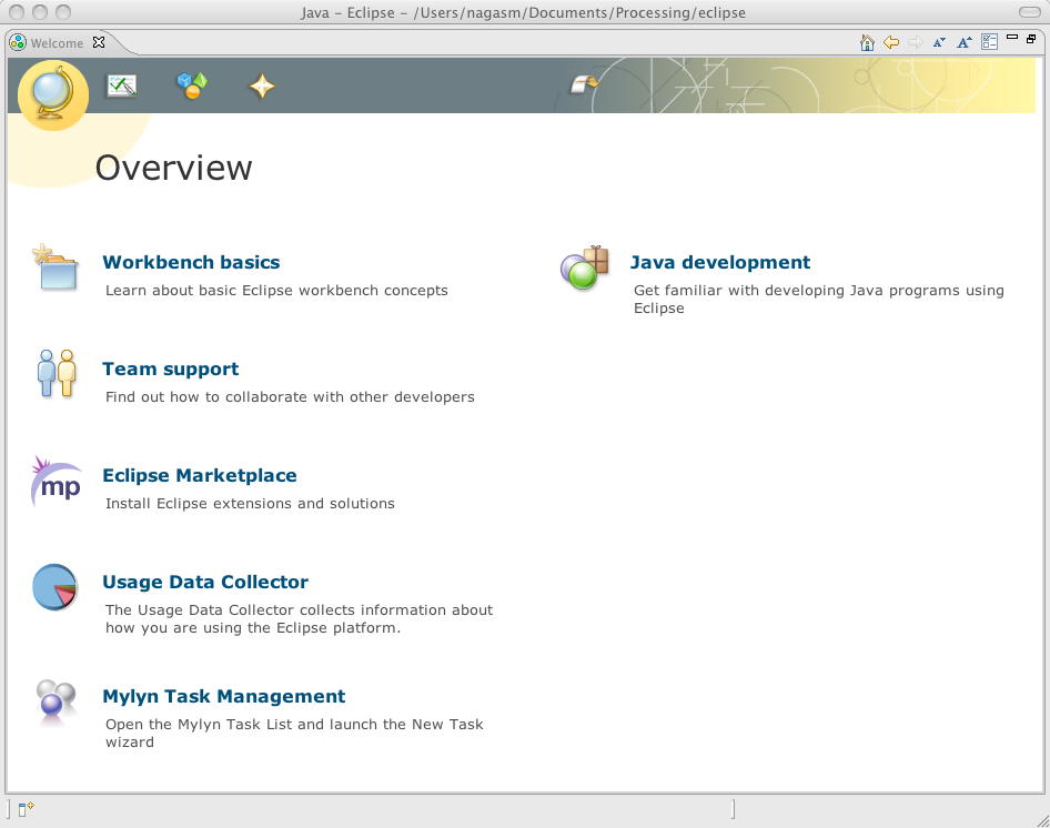 そこで、 Processing in Eclipse をいったん離れて、eclipseのWelcome Screenに戻って「Overview」を見てみると、以下のようなメニューである。
