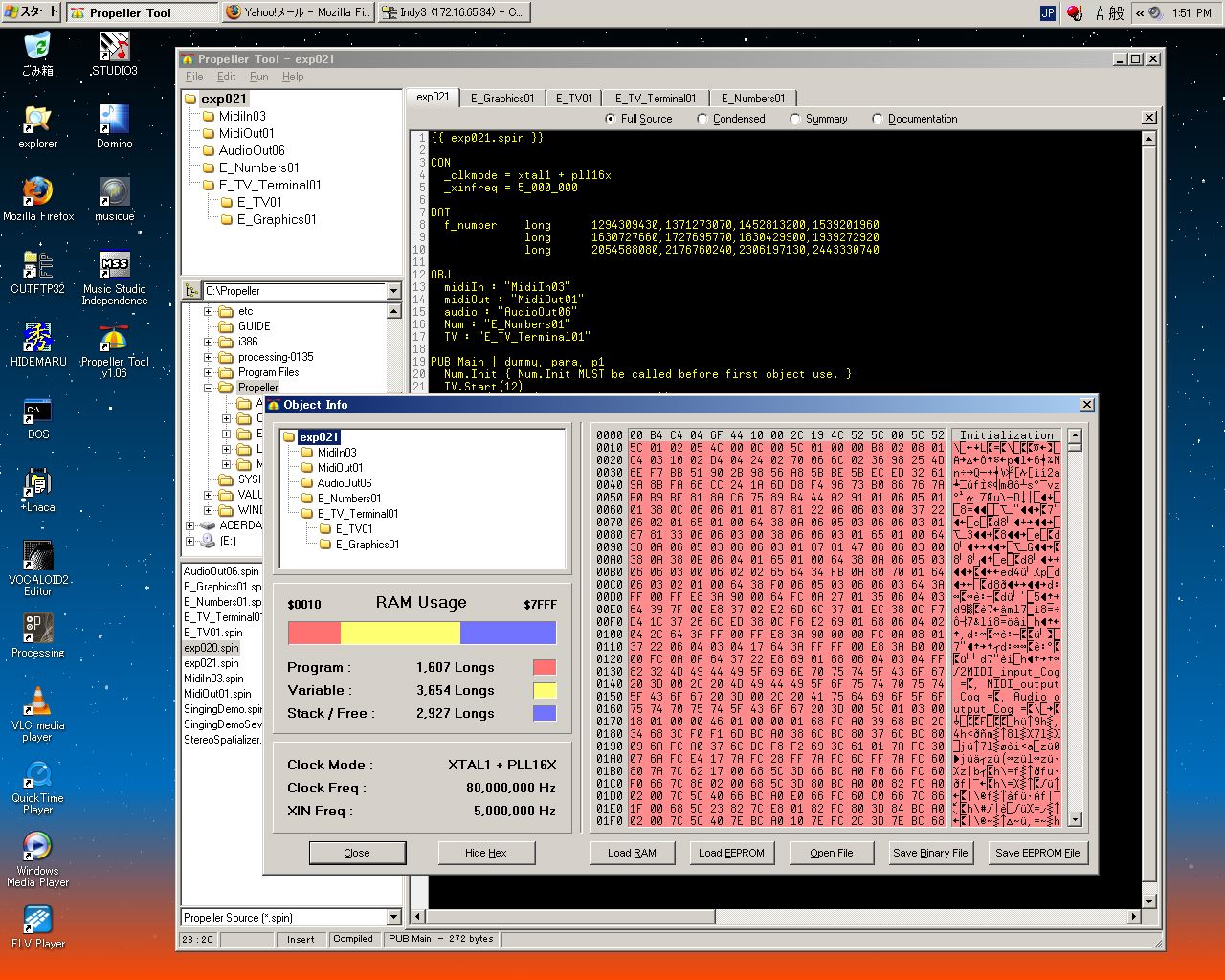 これで、このプログラムの走るPropellerボードに、 電子ピアノなどをMIDIで繋いで、簡単な楽器としてスタンドアロンで使う・・・ というようなアプリケーションはかなり身近になった。 当面、あまりPropellerでこちらの方面に深入りするつもりはないので、 また鉾先を変えていくことにしよう。