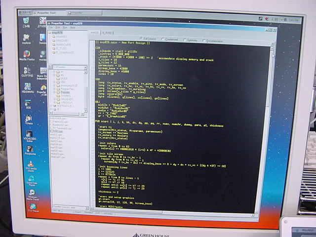 ビデオ出力の片方をPropeller Demo Boardと同じにしたので、 同じプログラムで、とりあえずビデオ出力(B)は簡単に出てくれた。