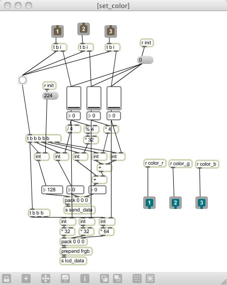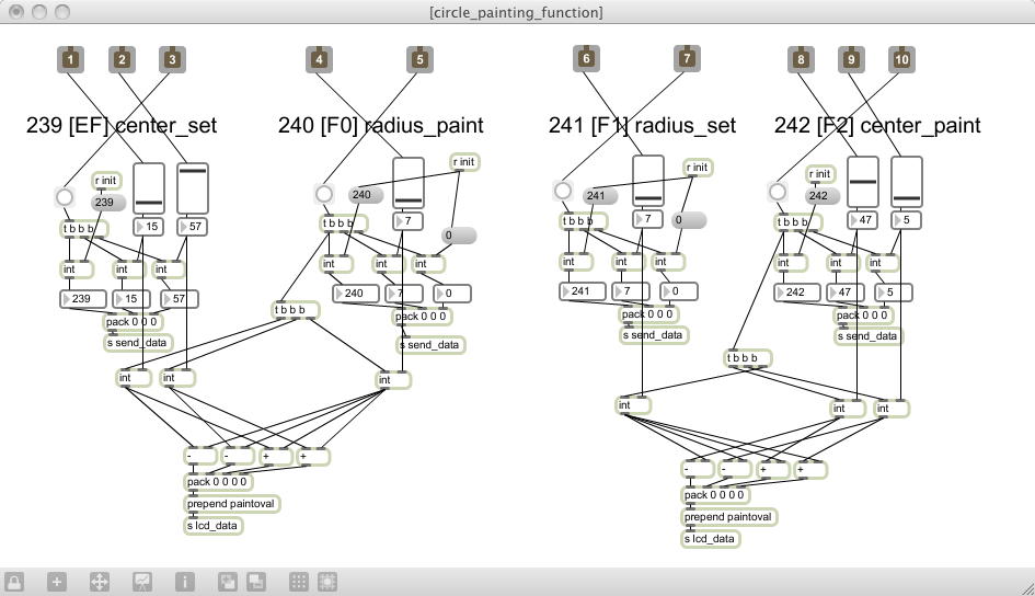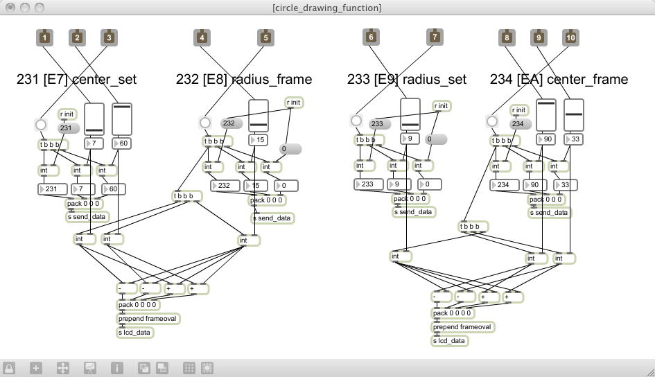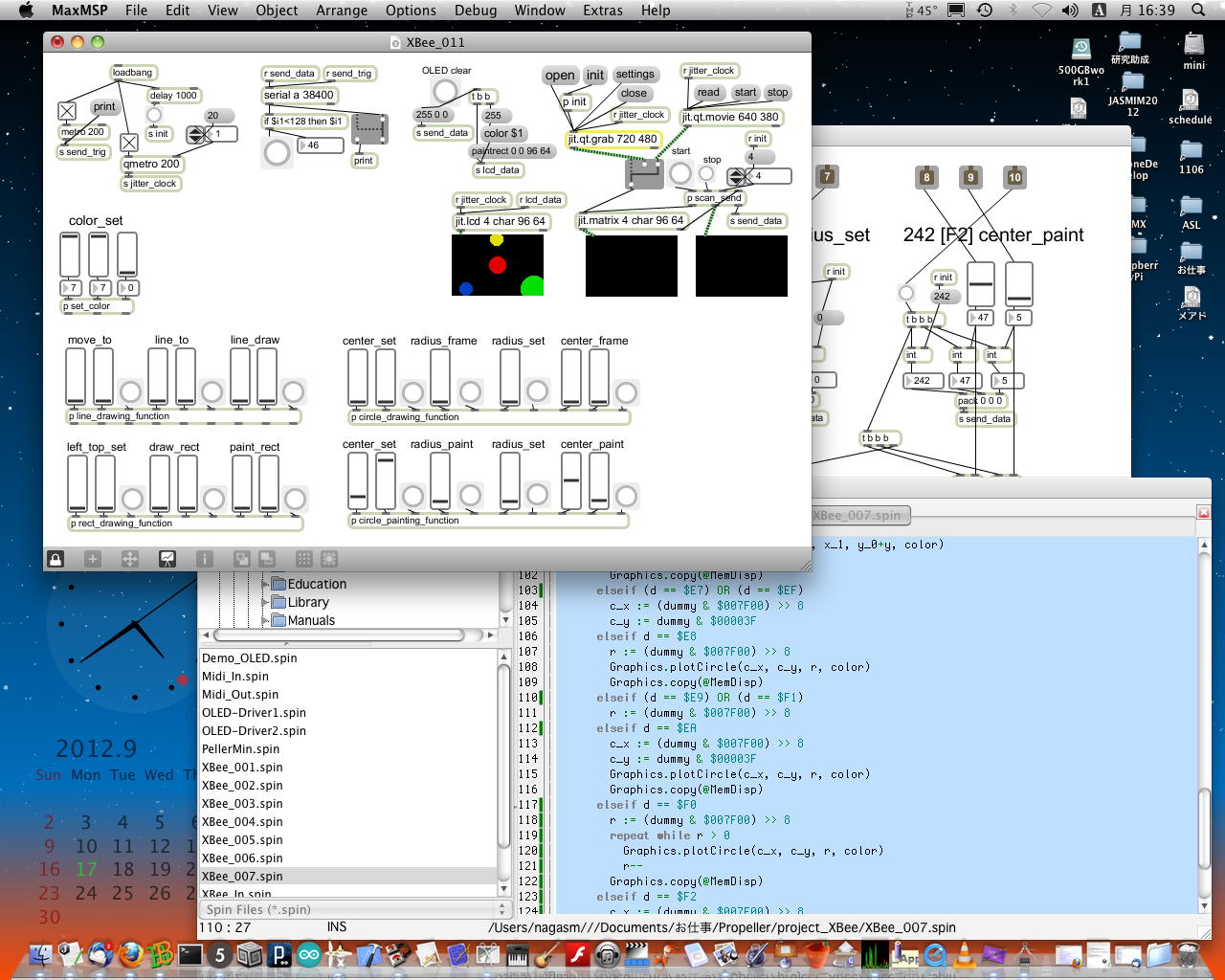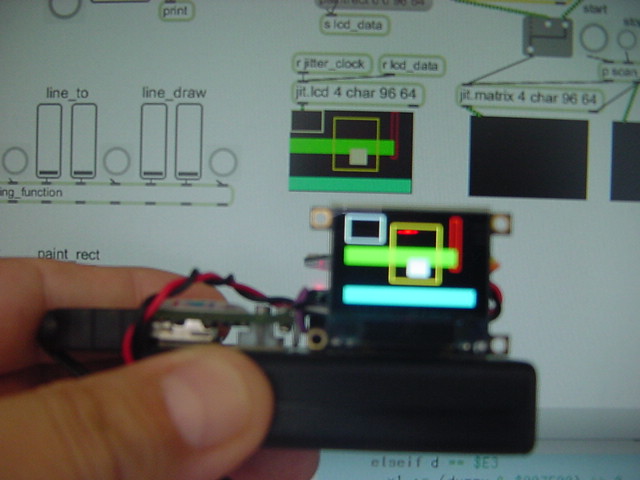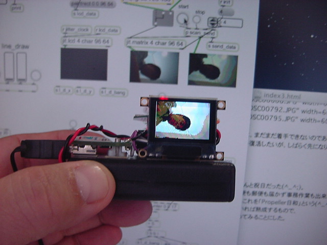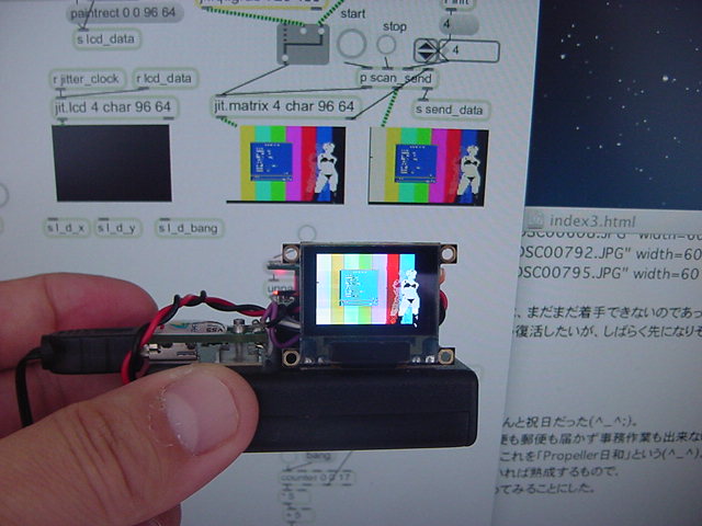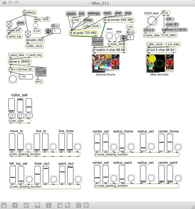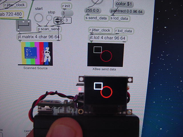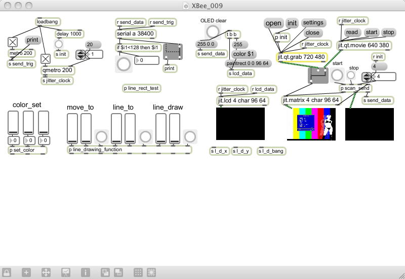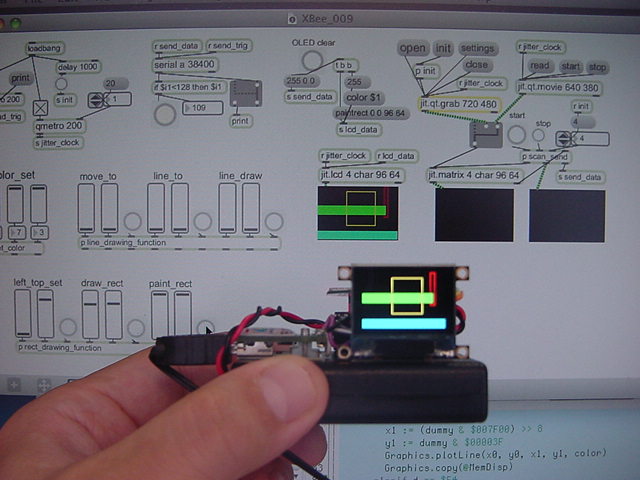 - Maxからはシンプルに定義したコマンドをXBeeで送り、Propellerのspinプログラムはシンプルにドライバを呼び出し、新たなグラフィックドライパを追加してアセンブラで矩形の座標を解釈して描画する