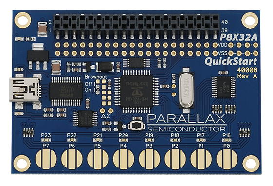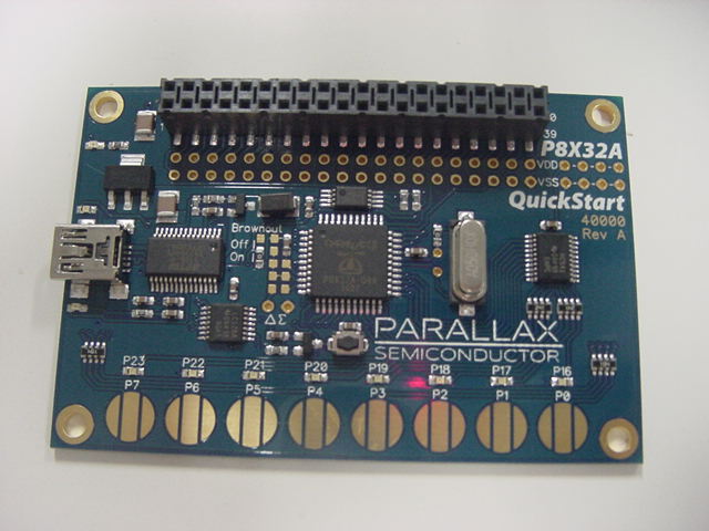 Propellerチップと直結している。Propellerのデータシートから、各ポートごとに+3.3Vで40mA- ディジタル入力ポートの電圧(+5Vか+3.3Vか)
