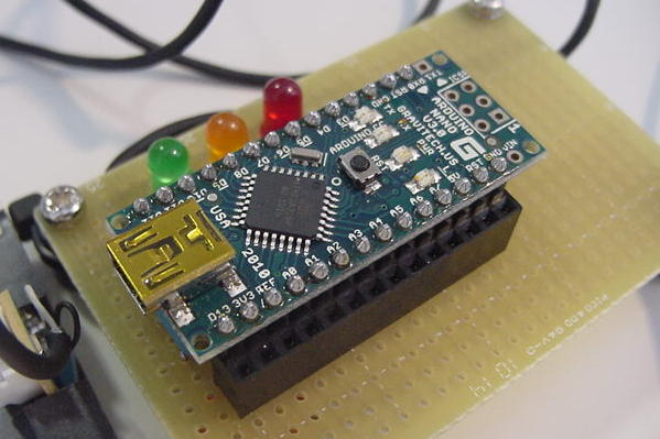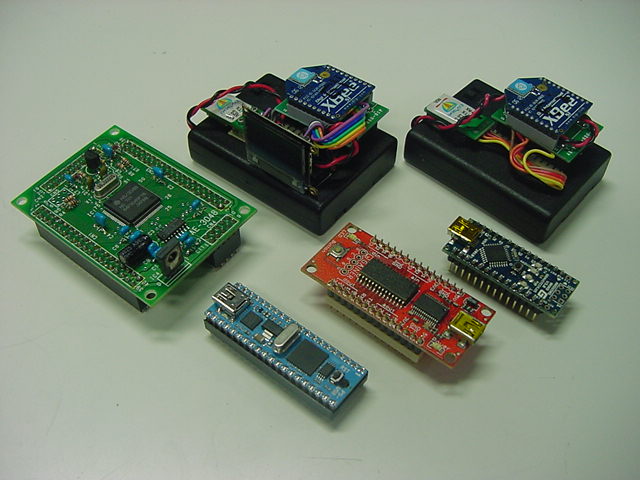 秋月電子では、PDF等でAKI-H8の外形寸法図などの情報を公開していない。秋月サイトの写真とともにとりあえず作ったのが、以下であるさて、引き続き、Arduino Nanoについても調べてみることにした。 2010年の メディアアートシンポジウム の 「フィジカル・コンピューティング」ワークショップ の時に、僕はMaxとGainerの紹介を担当したが、 小林さんのパートの教材として赤外線距離センサ2個と2軸ジョイスティックとLED3個を繋いだ以下のようなものを10個ほど作っていたが、 これが既にArduino Nanoだった。(^_^;)