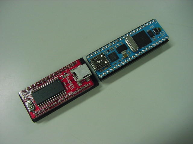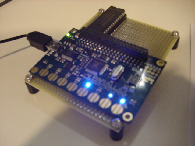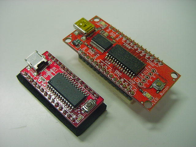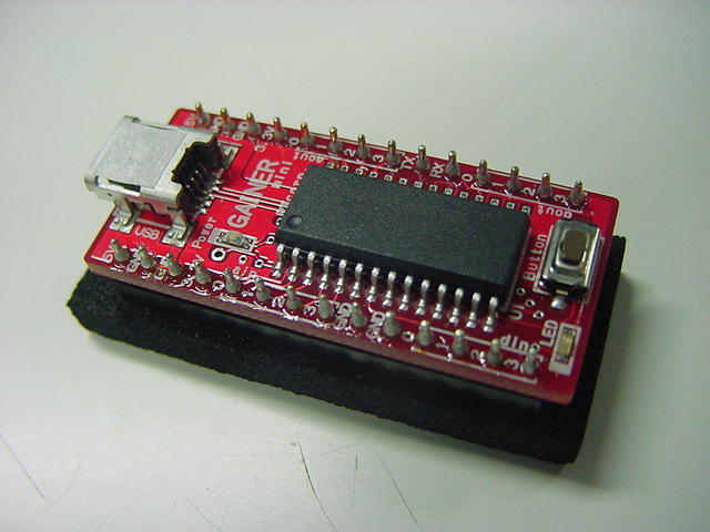 - Vss、Vdd、32本の I/Oピンに拡張ヘッダーを通してアクセスが可能(28本が一般使用、2本はI2Cバス、そして、USBパワーに接続したなら2本がオプションでTx/Rx)
