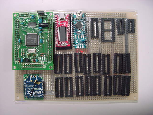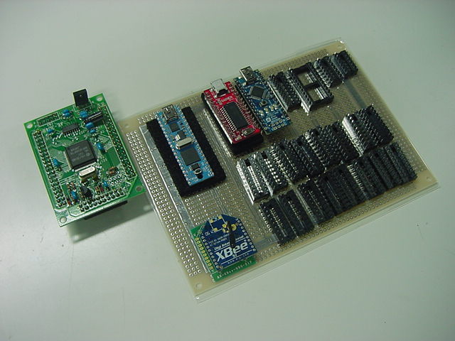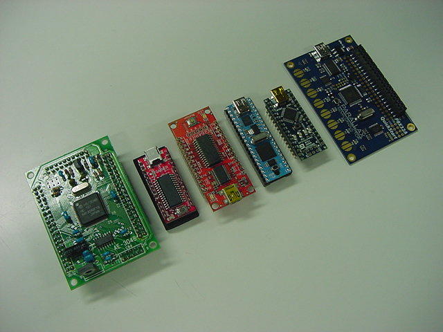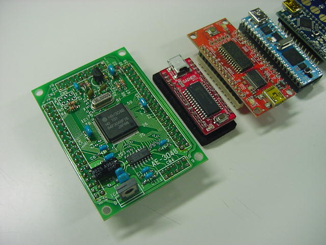 AKI-H8、Propeller(PropStick)、Arduino-Nano、Gainet-Mini、という異なる4種類のマイコンを搭載して、 これらに共通の周辺拡張機能を搭載する、というボードの設計は、なかなかにパズルである。 「可能な限り、拡張性を最大にする(使わない部品は挿さなければよい)」という条件において、 考慮すべき点はざっと以下である。