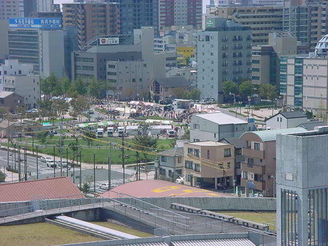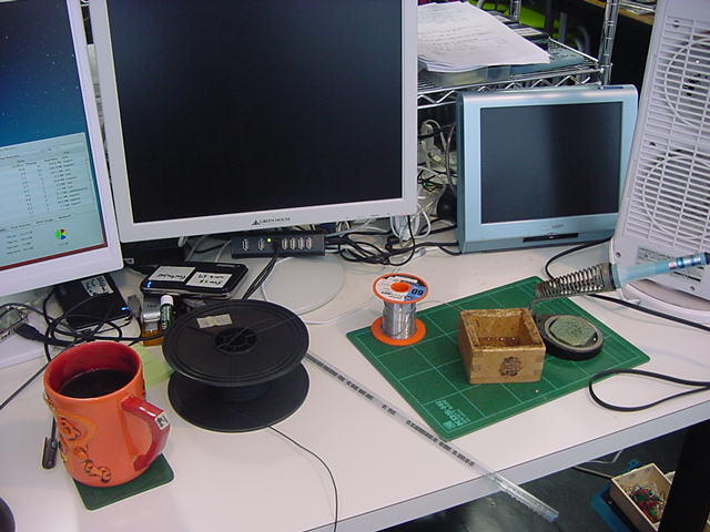台風17号が日本列島縦断か・・・というこの週末であるが、 以下のように研究棟11階からの眺めは、まだ好天である。 SUAC「出会いの広場」には、来週木曜日にある薪能の舞台のセットが設置されたままであるが、 果たして台風直撃なのにこれでいいのか(^_^;)。 そして駅前東街区には、たくさんのテントが見える。 「浜松餃子まつり」である。明日、OGの野口さんと行く予定であるが、 なんとか雨が降らずに・・・という希望は叶うだろうか。さて研究室では、いよいよM2の伊熊さんの修了制作のシステム裏方作業である。 メイルの確認で、「UVセンサは30個」「センサまでのシールドは40cm」と確認できたので、 まずは以下のように、基板(ここはPropellerで行く予定)の方でなく、細シールドケーブルとUVセンサの前加工から始めた。 なかなかに小さい(^_^;)。 そしてようやく、以下のように「UVセンサ+シールド線」の前加工が完了した。 30本もあるとヤレヤレというところだが、久しぶりにハンダの感覚が蘇ってきて、最後の5本ぐらいは快調だった。 これで、後期「サウンドデザイン演習」のハンダ付けにも突入できるだろう。 11階から見える「浜松餃子まつり」会場は、ずっと凄い人だかりである。 明日の「餃子とビール」を楽しみにしつつ、今日はここまで。(^_^;) 2012年10月1日(月)