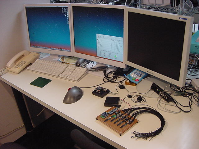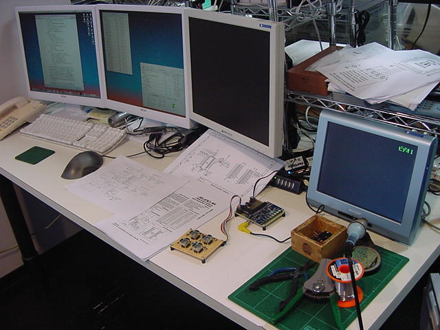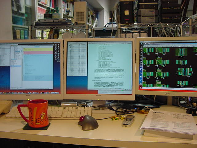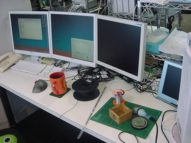 9月26日(木)は、「9月卒業式」と「アルスエレクトロニカ映像資料整理」のため、Propellerはまったく進展が無かった。 「アルスエレクトロニカ映像資料」というのは、後期の「メディアアーツ論」と「メディアデザイン特論」の講義準備でもあり、 行ってきたばかりの 欧州ツアー の記憶があるうちに、アルスエレクトロニカ入賞作品集DVDから教材ムービーを作り、 撮ってきたビデオとともにまとめる必要がある。そして翌9月27日(木)も、Propellerはまったく進展が無かった。 終日、お仕事パソコン(Mac mini)の2画面モニタと並んだお仕事デスクの3台目のモニタでは、 もう1台のMac mini(ここで教材ムービー編集のレンダリング)がずっと走っているので、 切り替え器を経由して接続されているWindowsマシン(今回の実験試作基板の設計CADが入っている)は使えない(^_^;)のであった。