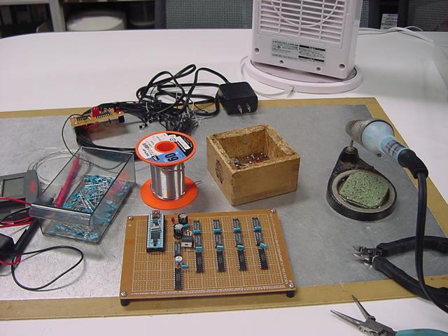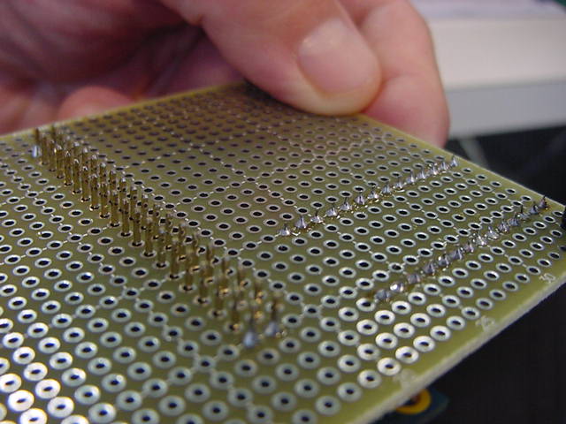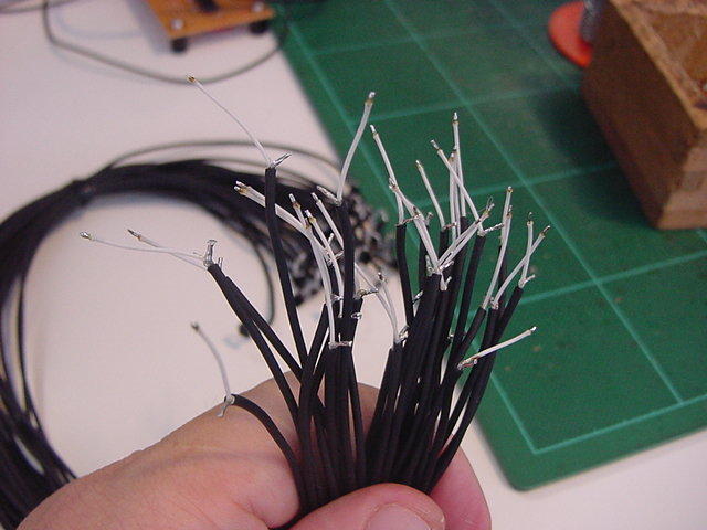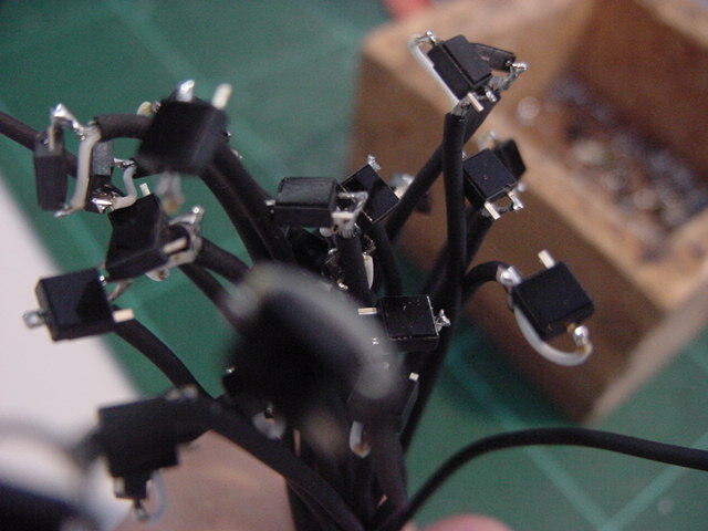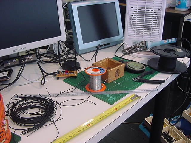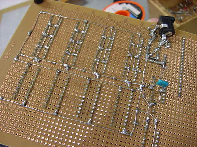さて、ここからは恐れていた超単純作業である。 以下のように、とりあえず各部品に配線のためのラインを繋いでみた。