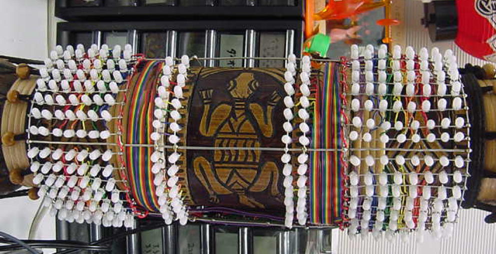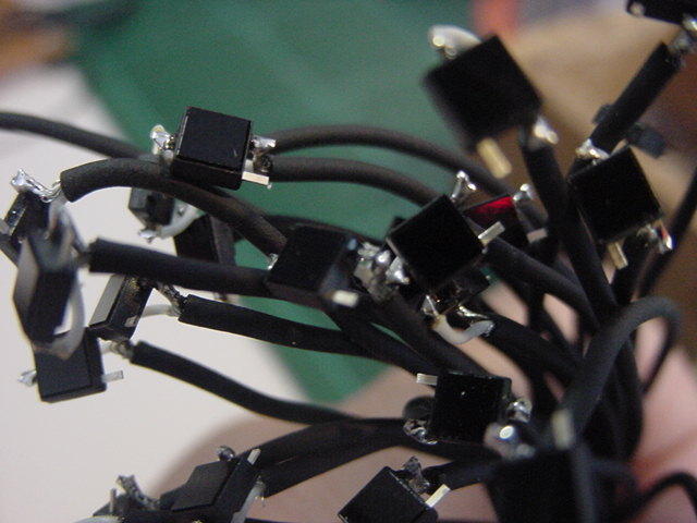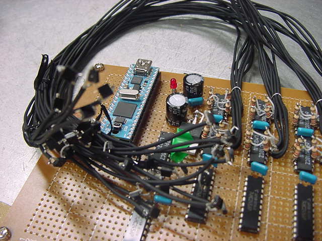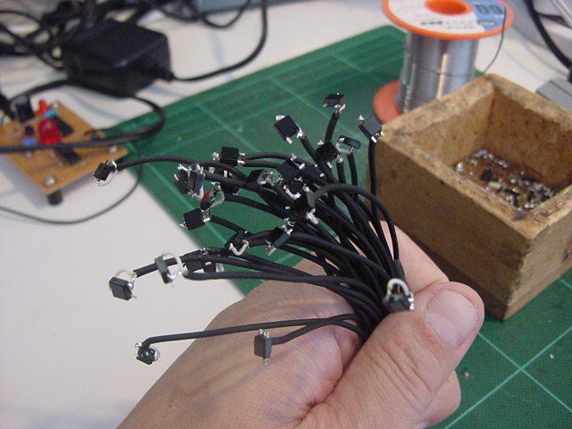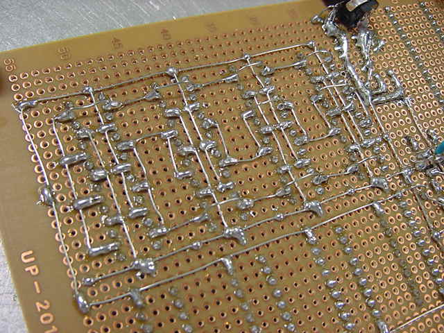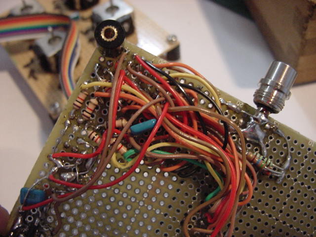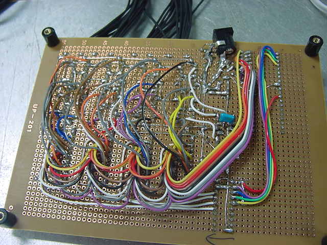 ・・・かと思うと、いきなり知らない人から名指しで(^_^;)、 「長嶋洋一さん向け: 電子回路で芸術」 というブログも出て来た(^_^;)。 その先には 「空中配線ロボット」 というページがあったが、これならもっと凄い巨大なものを、アルスエレクトロニカだったかNIMEだったか、で見てきた。 空中配線は僕も嫌いではないので、2006年に手作りしてNIME2007(ニューヨーク)で公演した以下の楽器とかも、 基板ナシで全てスズメッキ線で空中配線しているので、あまり驚かない。