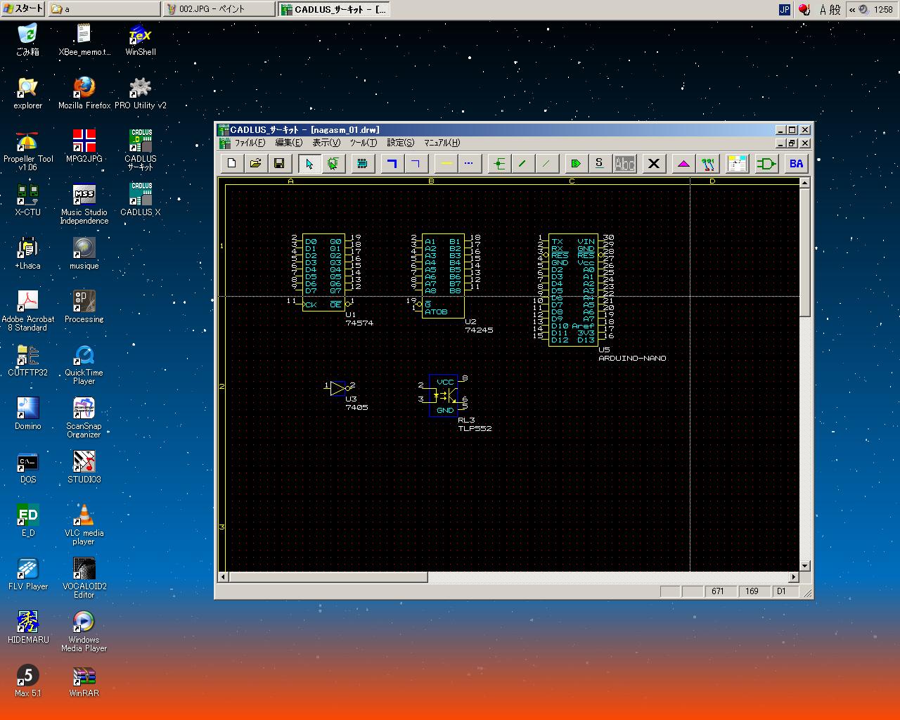 午後になって、1回生の金重さんが研究室に来て、一緒に ドラえもん望遠鏡 を作って記録した。 制作は超カンタンだったが、撮影にこれまでで一番、難儀した(^_^;)。 そして後は放課後のアカペラまでの時間、引き続き、「CADLASサーキット」で回路エントリーを続けた。 汎用入出力バスの信号に間違いを発見するなど、なかなか外見では分らない修正が続く。 これだからCADは嫌なのである。(^_^;)