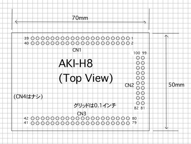 マニュアルで「線引き」について調べていたところ、なんと速攻で「P板.com」からメイルが届いた(^_^)。 素晴らしい対応である。 ということは、どちらでもいい、さらにピン番号の配置はジクザグだろうが何だろうが、 外形の定義次第なので大丈夫、ということなのだろう。 そうなれば、サッサと登場人物を登録してしまい、回路設計(配線)に入るしかない。 3つのコネクタとして登録して、外形寸法図で統合するよりも、 巨大であっても全ピンがある方がなんとなく精神衛生上は好ましい、と考えて、 結局ここでは以下のように登録してみた。静岡文化芸術大学 長嶋 洋一 様 いつもお世話になっております。P板.comサポート窓口 ○○ ○○です。 お問い合わせいただきまして、誠にありがとうございます。 3つの部品とする場合は20ピンと40ピンのコネクタ部品を登録して 回路図上に参照名をCN1〜CN3として配置します。 1つの部品とする場合は端子番号1〜100ピンの部品を登録して 回路図上に配置します。 宜しくお願いいたします。そして、外形寸法図にあったピン番号を、この部品登録に合わせて、以下のように変更した。 これにより、AKI-H8の全ピンに対して、一意にピン配置が対応するのだろう。 この論理的整合だけ注意すればいい、というのは、ある意味ではシンプルなのであった。 これで、あとは基板上には若干の部品と、あとはコネクタが並ぶだけである。 内部配線としてはターミネータとなるため、配線設計のためには、コネクタも部品として登録する必要がある。 コネクタのピン配置は、まったく制約が無いので、まさに仮想的な登録でいい事になる。。 2012年10月9日(火)