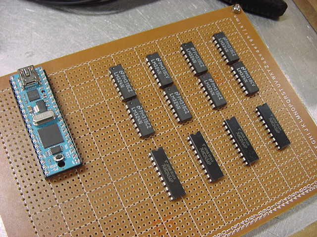 ちょっと検討した結論として、この汎用実験試作基板にGainerを搭載する意義があるのは、 「ディジタル出力64ビット」に拡張する場合に限ることが判明した。 モード6の、全ピンをディジタル出力に定義した場合に、そのうち8ビットを「汎用入出力拡張バスライン」として、 あとセレクトとCKの計4ビットで制御することになる。 残りの4ビット出力は、まぁコネクタから出すぐらいである。 他のモードの時には、この基板にGainerを載せる意味が無いので、従来と同様に、個別の基板を組むことになる。