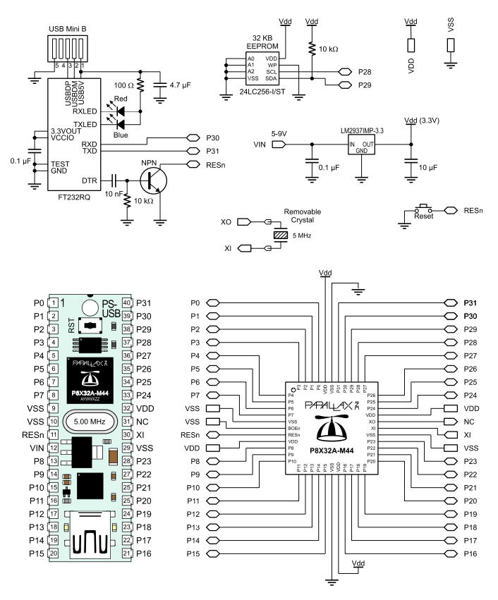 - 64 KB EEPROM (P8X32Aプログラム用の32 Kと、汎用使用の32 K)