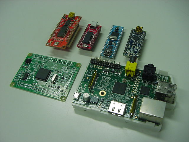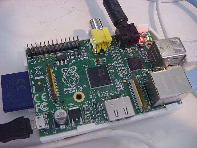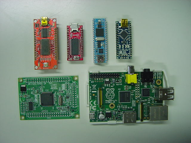 水曜日は1・2・4・5限に講義の日、木曜日は「出前授業」で豊橋の豊丘高校に行ってきて、金曜日はM2伊熊その他があり、また週末になった。 ただし来週は碧風祭ということもあり(デザインの一部学生はTDWに没頭)、静かな週末である。 ここで基板のCADを・・・と思っていたら、昨日、なんとイギリスから自宅に国際郵便封筒が届いた。 なんと半年も待たされて忘却の彼方にあった(^_^;)、Raspberry Piが届いたのである。 去年から話題になっていたこのボード、日本ではRSコンポーネンツから入手できるというので発注ユーザ登録をしたのが4月6日であった。 そしてRSから「大変お待たせいたしました。ラズベリーパイのBモデルをRSコンポーネンツからご注文いただけるようになりました」というメイルが届いたのが6月30日。 そしてその日のうちに発注して、以下のようにOrder Confirmationが届いた。配達まで12週間、待て、ということだったが、8月下旬には以下のメイルが届いた。 まぁ想定されたことだが、世界中からの発注で生産が間に合わないので遅れる、ということだった(^_^;)。Allied Electronics & RS Components Order Confirmation Thank you for your Raspberry Pi order, your order reference number is: *13##29* Once your order has been despatched we will send you further details on shipment and courier, to help track your delivery. Order details Order placed by Yoichi Nagashima Contact tel +815345###15 Contact e-mail nagasm@suac.ac.jp Date of order Sat, 30 Jun 2012, 08:51 AM Your order number Method of Payment Credit Card Delivery Type Desc Standard Delivery *(Despatch expected within 12 week(s))* Delivery details Delivery address 10-####01, Sumiyoshi-5, naka-ku Hamamatsu Shizuoka 430-0906 JAPAN Invoice address 10-####01, Sumiyoshi-5, naka-ku Hamamatsu Shizuoka 430-0906 JAPAN Reference: 13##29 Your order *RS Stock No.* *Qty* *Description* *Unit Price* *Goods Value* 756-8308 1 Raspberry Pi Type B Single Board Computer £21.60 £21.60 557-032 1 Ethernet network cable for Raspberry Pi £0.97 £0.97 2000114155 1 3.5mm Stereo to twin RCA plug cable for Raspberry Pi £1.49 £1.49 CASE-WHT 1 Raspberry Pi Type B Case - White £3.99 £3.99 2000117882 1 4GB SD Card with Raspberry Pi OS installed £9.99 £9.99 Running Total £38.04 Standard Delivery *(Despatch expected within 12 week(s))* £4.95 *Order total* *£42.99* Grand total: £42.99 Thank you for your order. Kind regards Allied Electronics & RS Components raspberrypi.rsdelivers.com・・・そしてようやく、発注時点では「1個」しか注文できなかったRaspberry Piが届いた、という事である。 RSのページに行ってみると、いま発注したら納期は12月だ、ということだったが、複数個もOKということで、 さっそくオンラインでRaspberry Piを10枚、発注した。 以下が、届いたRaspberry Pi、ケース、OSの入ったSDカード、ケーブル類である。 RSを経由しているので3000円近いが、ネットの謳い文句は「An ARM GNU/Linux box for $25. Take a byte!」である。 ARMのLinuxボードで、直接購入すれば2000円ほど、というのは驚異的なシステムである。RS Online Raspberry Piの出荷遅延に関して いつもお世話になっております。 この度はRaspberry Piをご注文いただきありがとうございました。お客様の注文番号は101013##29となっております。 発売以来想像以上の反響となり、Raspberry Piの生産が需要に追いつかす現在出荷の遅延が発生しております。 当初メーカーより9月時点で4万個のRaspberry Piを納入されることとなっていましたが、Raspberry Piに使用されて いるコアプロセッサが市場で不足しているため、10月まで納入が遅れるとの連絡が入りました。 弊社としては出来る 限り遅れることのないよう最大限の努力をしておりますが、この影響によりお客様への商品の発送が最大で4週間程度 の遅れることが想定されます。 最新の出荷状況、また遅延に関しての情報はFAQページ、またRaspberry Piフォーラム に掲載する予定です。生産の状況に関して、新たな進展がありましたら再度報告をさせていただきます。 この度商品の出荷遅延によりご迷惑をおかけすることとなり大変申し訳ございません。弊社では引き続きお客様の 手元へできる限り早く商品をお届けできるよう、メーカーとの調整を継続してゆきます。 今後ともよろしくお願いいたします。 RS Components & Allied Electronics今回の汎用実験試作基板のホストにRaspberry Piを搭載する事は無い(コネクタが無いのでRaspberry Piはケースに入れてスタンドアロン)が、 周辺を拡張するために接続する可能性は考慮しておきたいので、ここで寄り道して、今日はRaspberry Piと遊ぶことにした。 本当は「Raspberry Pi日記」になる奥行きがあるが、グッと堪えて、ごくごく上っ面を撫でてみることにしよう。 昨今のオープンソースの風潮から、このような新しいシステムについても、たいていはGetting StartedまではWebで完備しているものである。 RS-onlineのRaspberry Piページ にも、もちろん本家の Raspberry Piサイト にも、膨大な資料がある。 これに従っていけばいい筈である。