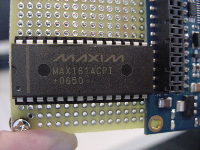 これを同時に満足する解を求めて、あれこれ検討した。 Propellerだけのために、8ピット・アナログ入力マルチプレクサ内蔵の汎用8チャンネルA/Dコンバータとして、 MAXIM社の MAX161 を使うことにしていたが、このお休み期間のうちに、MAX161のサンプルも10個、ちゃんと届いた(^_^)。