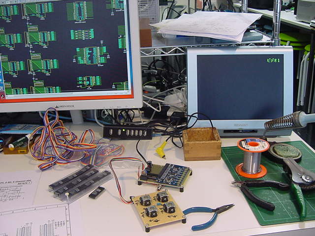 汎用実験試作基板を作る、という初めてのプロジェクトは遅々としている気がするが、 まぁそれなりにぼちぼち進展している、とも言える。 この日記part4も既に90KBとなり、Raspberry Piとかの話題はあったものの、 実質的には遅々としてページの区切りの分量を迎えようとしている。 この週末はもろもろデータ整理などで進展が無かったが、業者から「AD7829BN」が入手できる、 と連絡があったので、入荷(→実験)まで回路CAD設計を進めることにしよう。基板については、コストが「ピン数」、つまりスルーホールの穴開け/めっき加工の総数に依存するので、 多数のDIP(74HC245/74HC574)を、全て300milのミニフラットパッケージにしてしまう、 という可能性に改めて注目した。 過去に、Wiiリモコンに付加する手首の筋電センサの開発研究の時に、 こんな作業 をやっていて、学生には難しいものの、フラックスを使えばそこそこ簡単に出来る、と経験していたのである。 全体が確定してからカウントすればいいが、これによって、基板サイズもかなり小さく、コストもかなり安価になる。 基板の用途としてディジタル多数ポートを使用しない場合には、ICを付けなければいいので、 この可能性はキープしていこう。